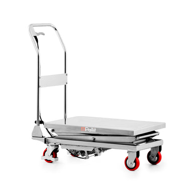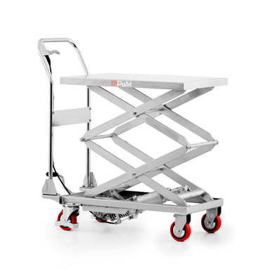 This stainless steel INOXX-L lifting table trolley with double scissors is used in the food, pharmaceutical and chemical industries. Due to the hig...