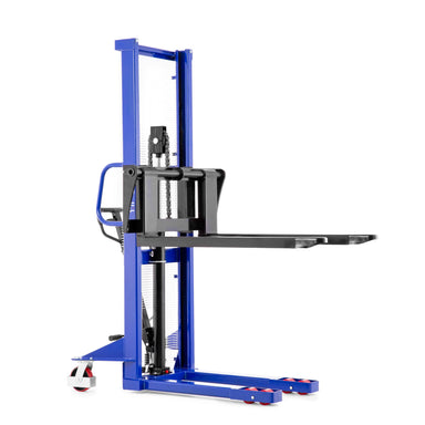 The semi-electric SEMI is a lot of pallet stacker for little money. It saves time and effort when stacking, loading and unloading from shelves and ...